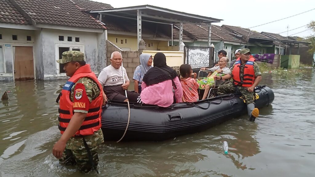 Babinsa Desa Buni Bakti yang dipimpin Peltu P. Hutasoit bersama Serka Nasan, dibantu personel Komcad Serda Amrizal dan Serda Kusmayadi, menggunakan satu unit perahu karet untuk mengevakuasi warga yang membutuhkan pertolongan segera, khususnya lansia dan warga yang sedang sakit.