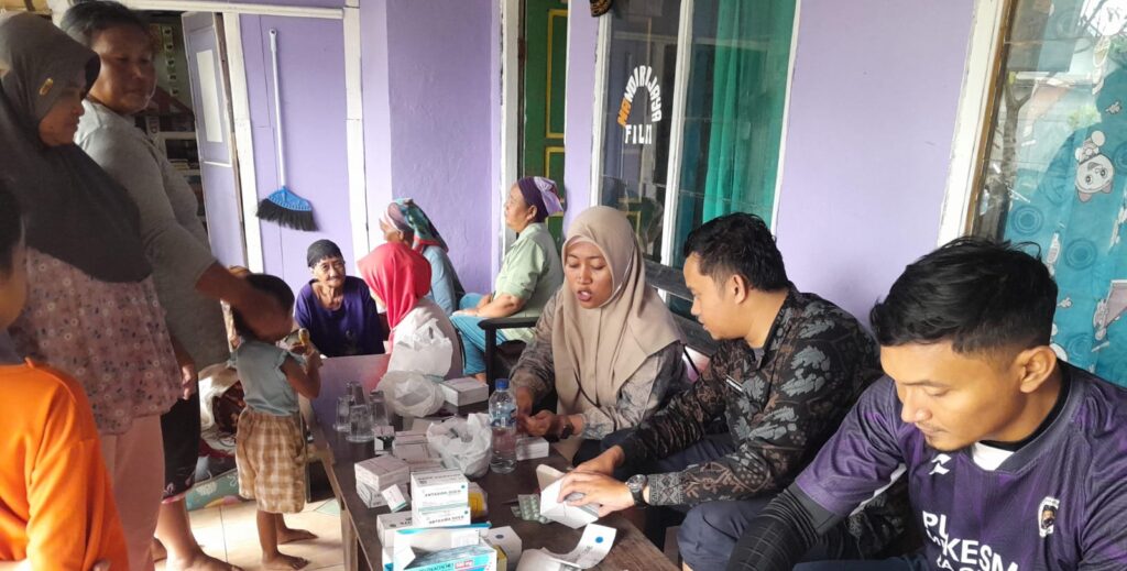 Petugas kesehatan dari Puskesmas Muaragembong terjun langsung memberikan pelayanan kepada warga terdampak banjir.