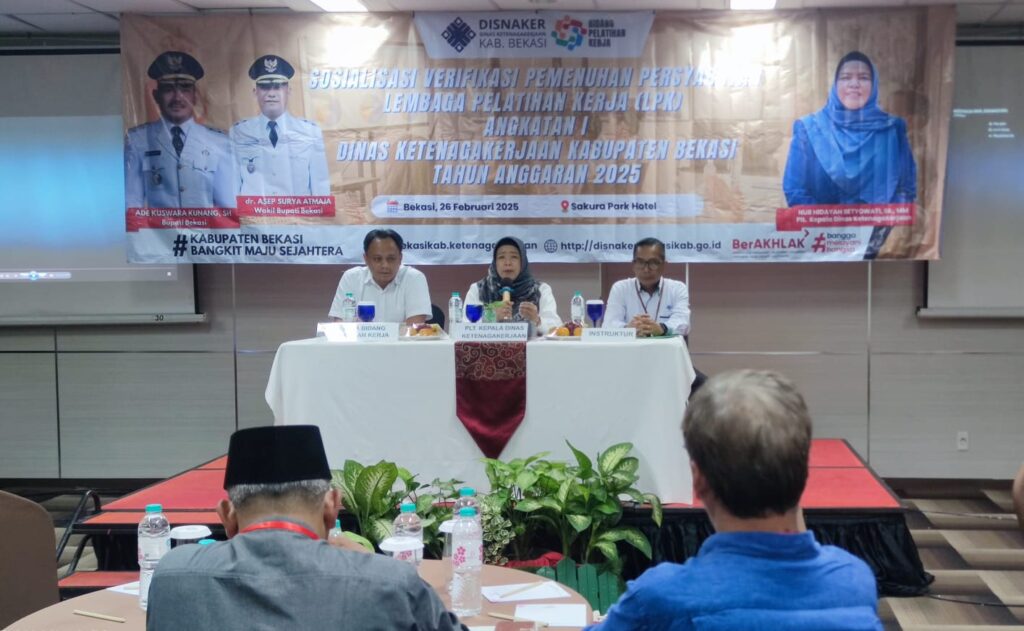 Dinas Ketenagakerjaan (Disnaker) Kabupaten Bekasi menggelar sosialisasi verifikasi pemenuhan persyaratan bagi Lembaga Pelatihan Kerja (LPK) dan Balai Latihan Kerja (BLK) Komunitas di Kabupaten Bekasi. Acara ini berlangsung di Sakura Park Hotel & Residence, Desa Sukamahi, Kecamatan Cikarang Pusat, pada Rabu (26/02/2025) dan diikuti oleh sekitar 50 LPK dan BLK Komunitas.