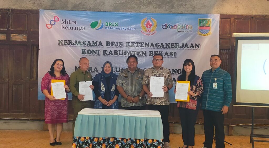 KONI Kabupaten Bekasi resmi menjalin kerja sama dengan BPJS Ketenagakerjaan serta RS Mitra Keluarga Cikarang dan Deltamas untuk memberikan perlindungan kesehatan dan keselamatan kerja bagi insan olahraga.