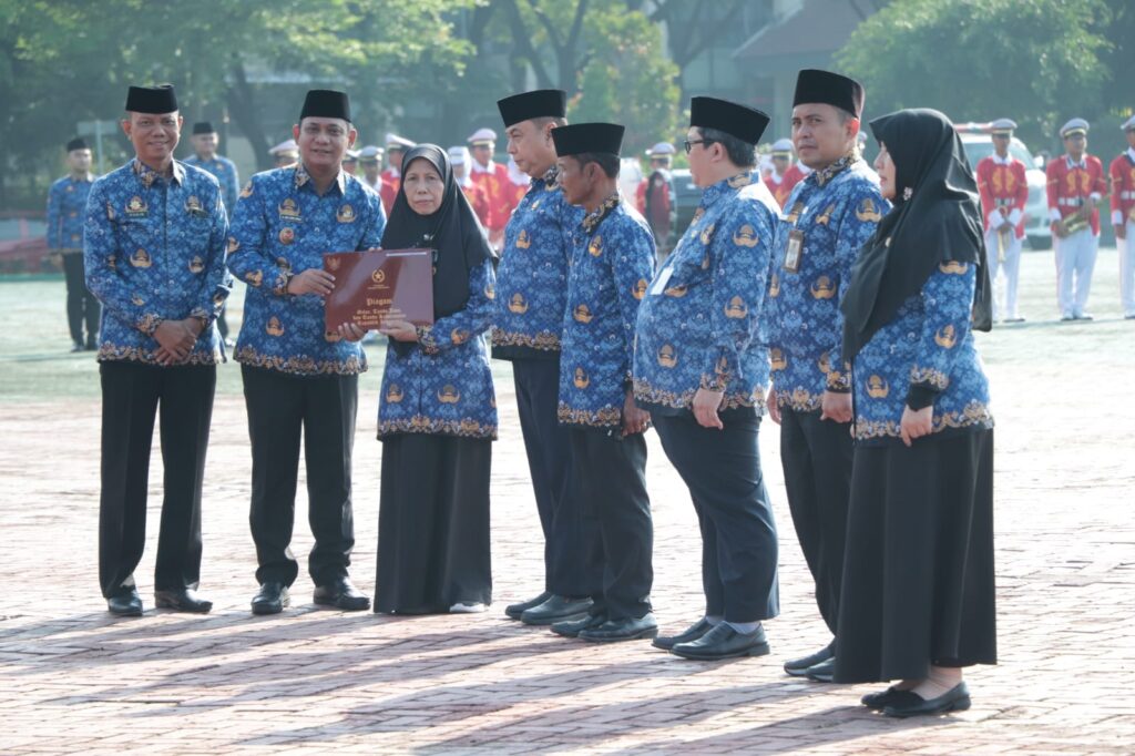 Wakil Bupati Bekasi dr.Asep Surya Atmaja memimpin Upacara Peringatan HUT KORPRI ke-54, Hari Kesehatan Nasional ke-61, HUT Dharma Wanita Persatuan ke-26, Hari Guru Nasional dan HUT PGRI ke-80. Bertempat di Plaza Pemkab Bekasi Cikarang Pusat, Senin (01/12/2025).